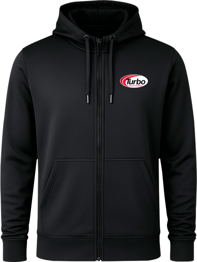 Designed with bowlers in mind, the Turbo Light Full Zip Hoodie combines comfort, style, and performance for life on and off the lanes. Crafted from lightweight 100% polyester, this hoodie offers an athletic fit that moves with you every frame. Details include flat tape drawcords with rubber-dipped ends, stretch poly rib cuffs with convenient thumbholes, and a flexible ribbed hem for a clean, modern finish.